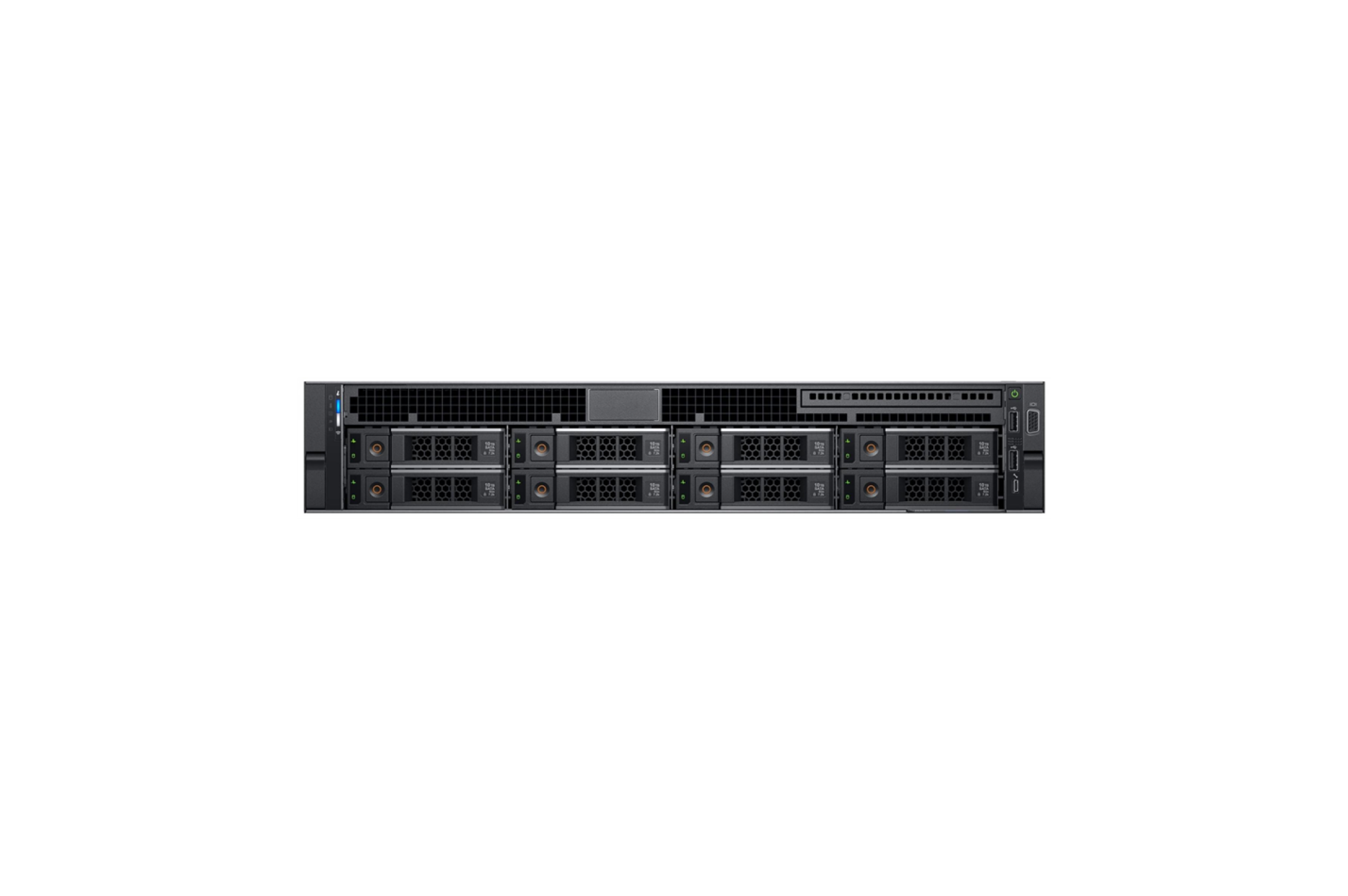 | Порты | Network Options 2 x 1GbE LOM + (optional) LOM Riser 2 x 1GbE, or 2 x 10GE SFP+, or 2 x 10GE BaseT Front Ports 1 x Dedicated iDRAC direct USB 1 x USB 2.0 1 x Video Rear Ports 1 x Dedicated iDRAC network port 1 x Serial 2 x USB 3.0 1 x Video |